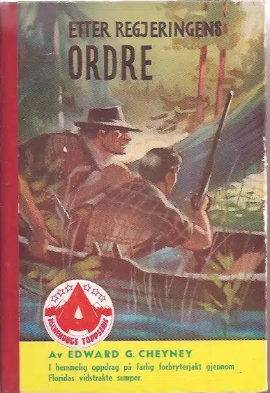Aschehough 1953. Oversatt av Rolft Gundersen. I hemmelig oppdrag på farlig forbryterjakt gjennom Floridas vidstrakte sumper. Revidert utgave.128 s. Innbundet. Lett falmet