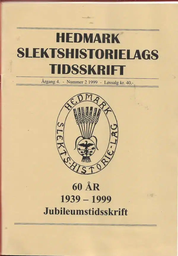 Hedmark slektshistorielags tidsskrift årgang 4 nr.2 1999