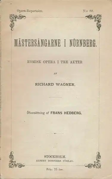 Mästersångarne i Nürnberg. Komisk opera i tre akterWagner, Richard