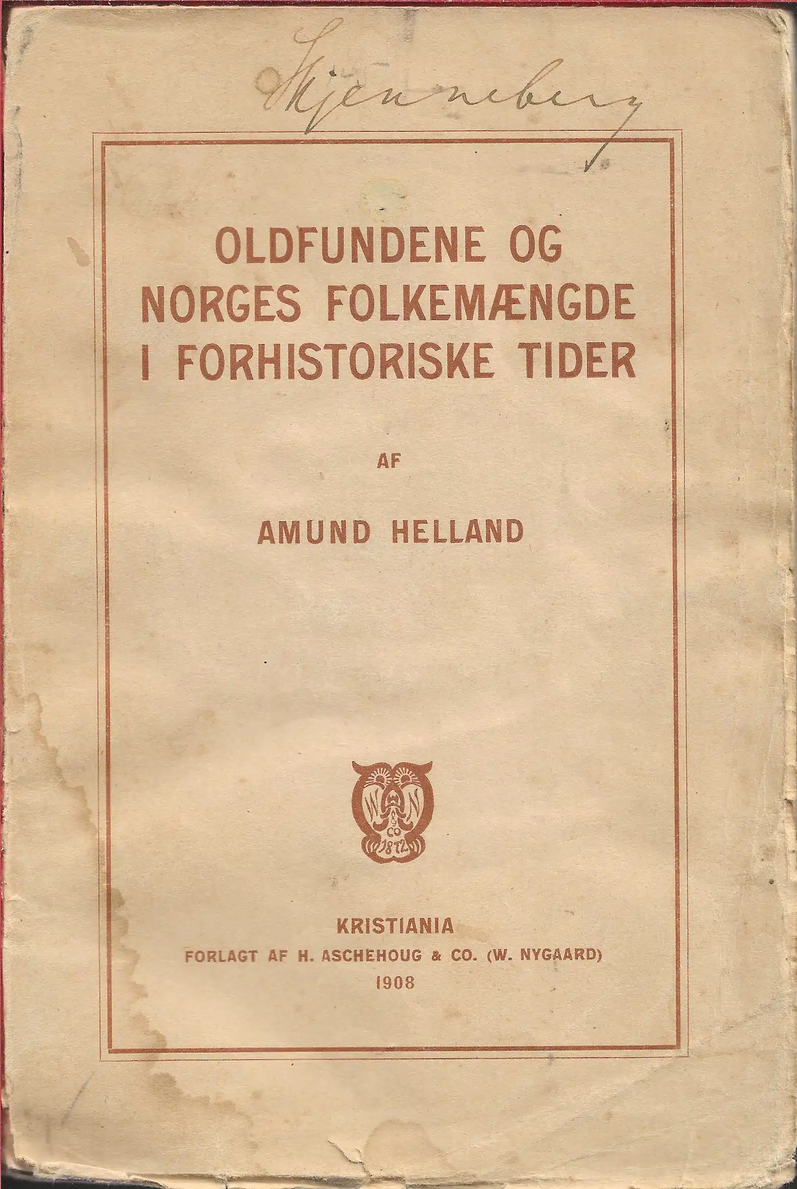 Aschehoug, Oslo 1908. Heftet. 127 sider. Baksiden og ryggenstripen mangler, skjoldet forside som er nesten helt løs, navnetrekk, boken er nesten utslitt utvendig, men innholdet er komplett og ok.
