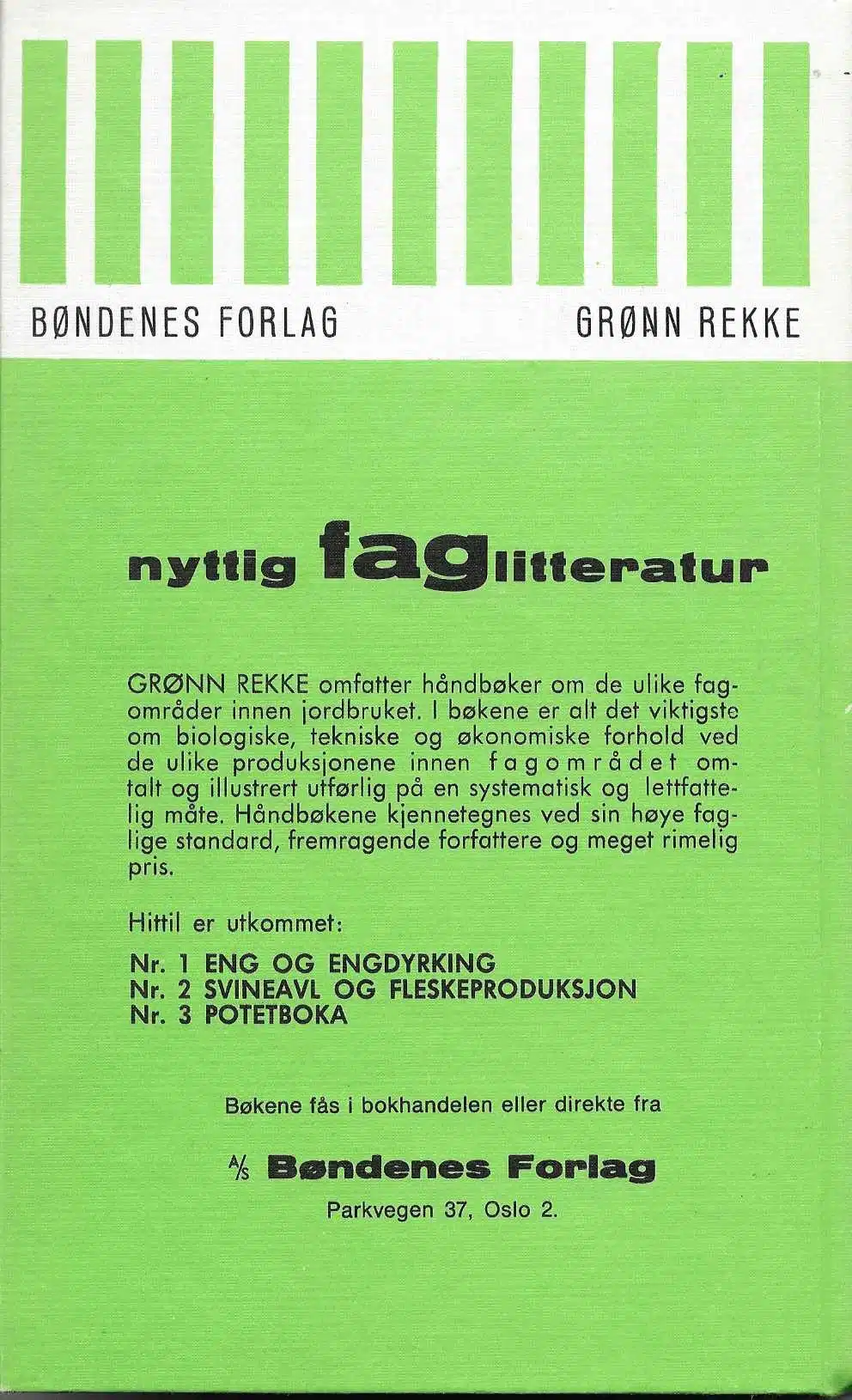 Bøndenes Forlag. 1966. Innbundet. 184 sider. Restopplag som ble funnet på Løiten Brænderi, pene eksemplarer