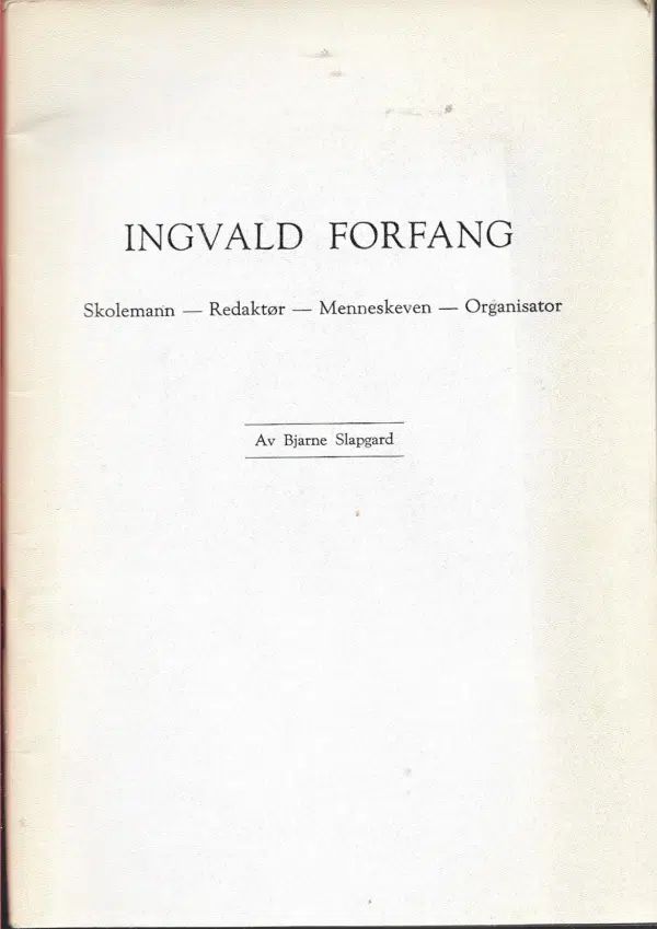 Slapgard, Bjarne: Ingvald ForfangSlapgard, Bjarne